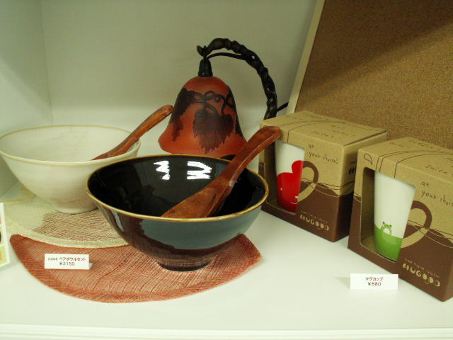 | おしゃれなペアボウルセットに、かわいいマグカップ。 こちらもお取り寄せできます! マグカップはカタログを置いています。ぜひご覧になってください。 |